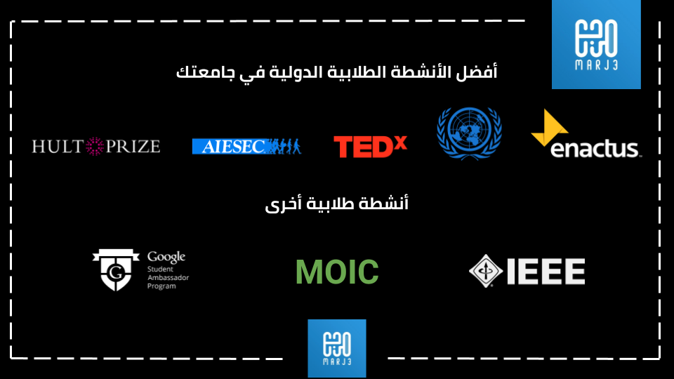 إن كنت غير متابع لما يحدث بجامعتك في السنوات القليلة الماضية، فربما لم تسمع عن المنظمات التطوعية مثل Enactus، أو TEDx، أو AIESEC، أو Hult Prize، أو MUN.
