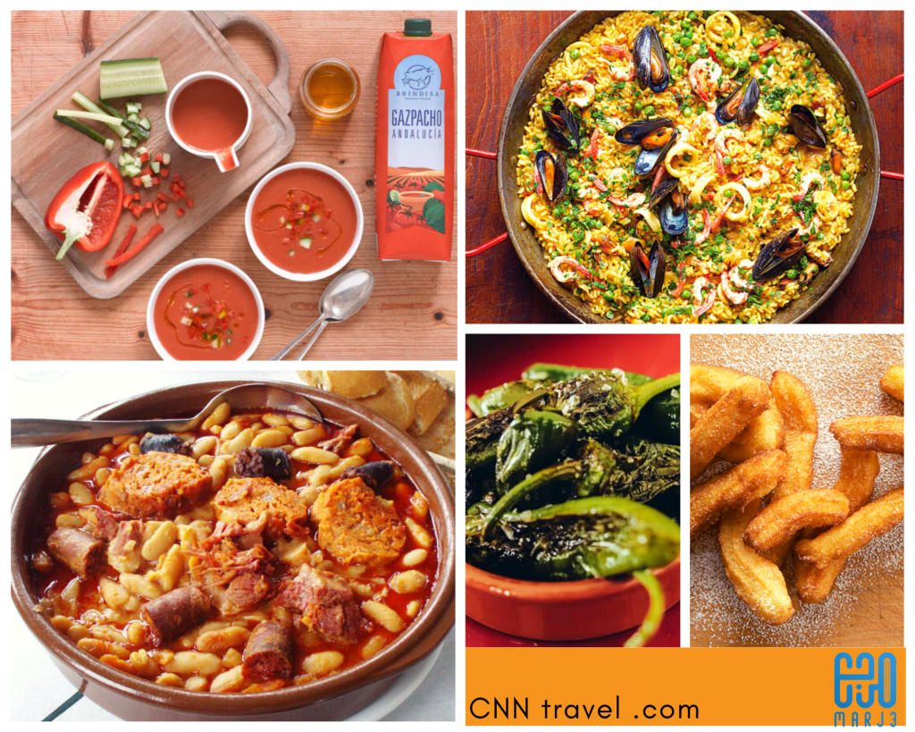 اشعر بطعم الأرز الممزوج مع الحبوب والزعفران والأعشاب مع الخضروات أو اللحم أو الأطعمة البحرية وهو يذوب بفمك، مخلفاً طعماً لا مثيل له، من طبق البايلا (باييا) إلى الغوص بعالم حلوى الكاسترد الإسبانية (الكريمة الكتالونية) التي تغطيها طبقة من القرفة وقشر الليمون، لتصعد إلى الغيوم مع طعم الانتعاش من حساء جازباتشو، الحساء الأندلسي المكون من الطماطم و الفلفل والثوم والكثير من زيت الزيتون ويقدم بارداً.