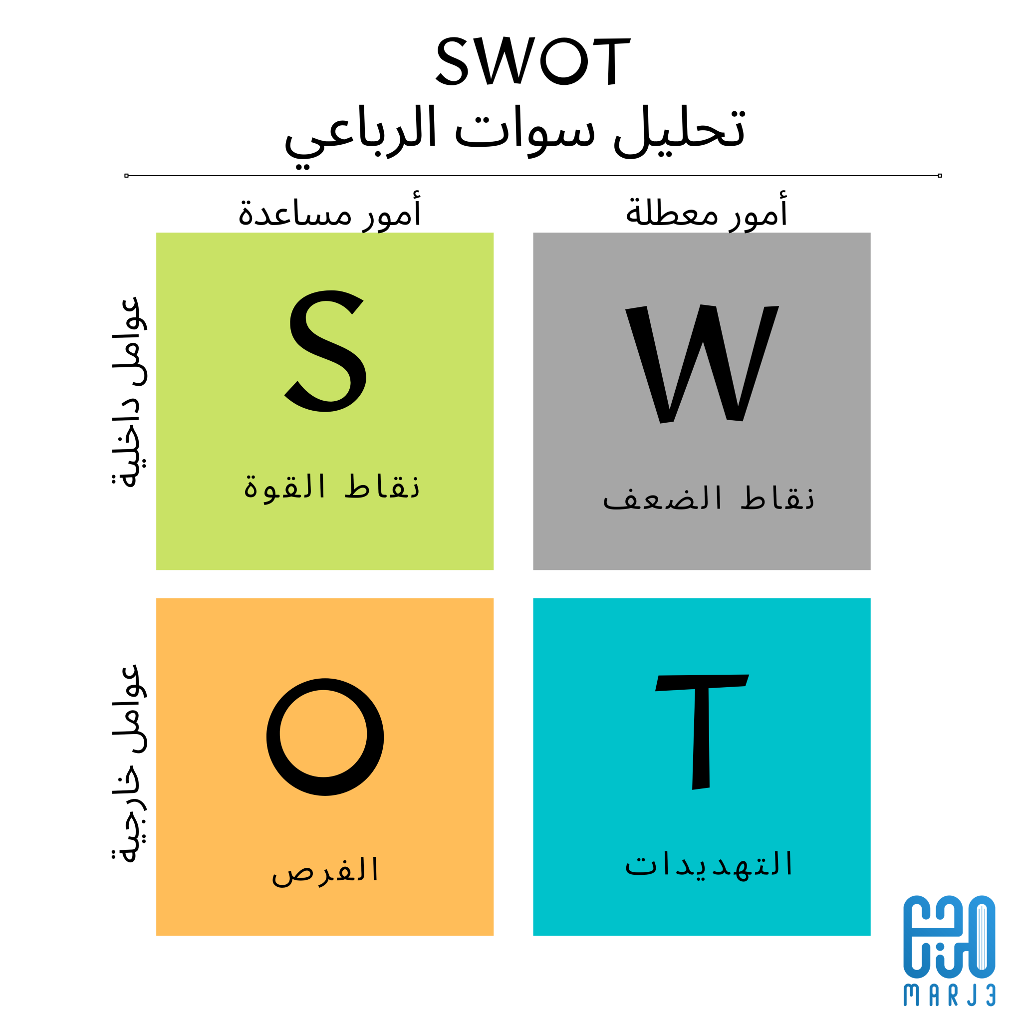 تحليل سوات(SWOT) الرباعي، هو تحليل سهل لكن مفيد يساعدك على تحديد كل من نقاط قوتك وضعفك بالإضافة إلى تحديد الفرص والتهديدات التي قد تواجهك.