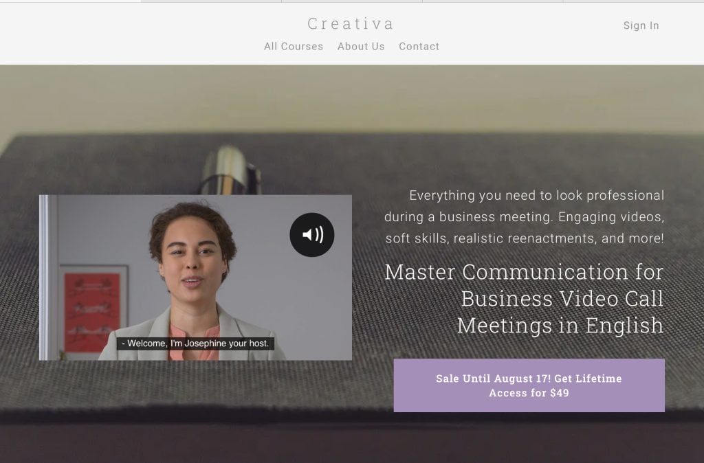 يتميز موقع (Creativa) بإجراء مكالمات مع متحدثين اللغة الانجليزية لتطوير لغتك، حيث يوفر كذلك مقاطع فيديو عالية الإنتاج لتحسين مهارات الاتصال في مجال الأعمال خاصة.