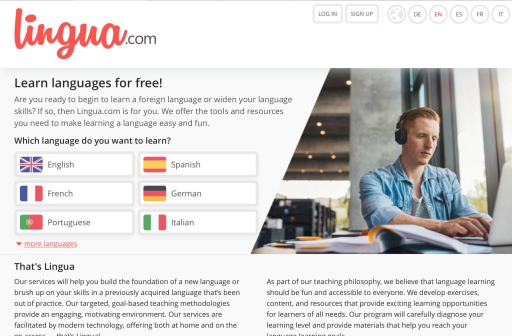 يعد موقع (Lingua)، موقعا تم تصميمه للأنشطة العملية لتعلم اللغات. يمكنك من خلاله وضع نص ما وسيقرأه لك لتتعلم كيفية النطق الصحيح للكلمات.