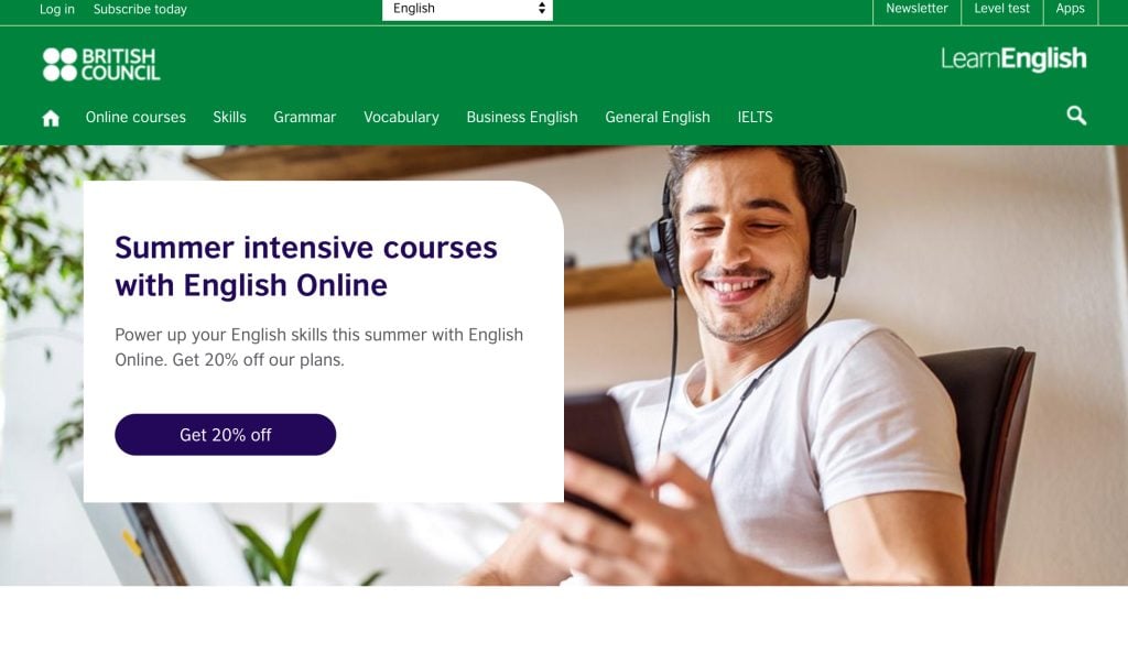 من خلال موقع المجلس الثقافي البريطاني (British Council) يمكنك أن تحظى بمختلف الخدمات مثل الدراسة الذاتية للدورات التدريبية، التحضير لاختبار الايلتس، ودروس مباشرة عبر الإنترنت في فصول جماعية تفاعلية مع معلمين خبراء.