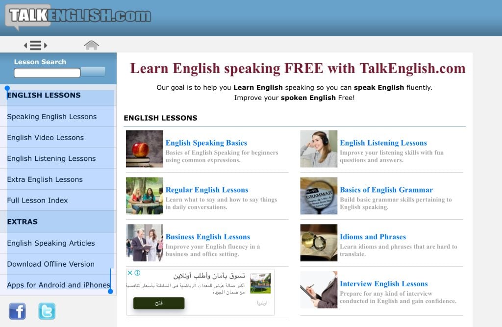 يساعدك موقع (TalkEnglish) على تحدث الانجليزية بشكل فعال وذلك لأنه يمنح مستخدمي الويب الخاص بهم المفردات العامية الشائعة التي تستخدم في اللغة الانجليزية عبر الدروس المعدة في الموقع.